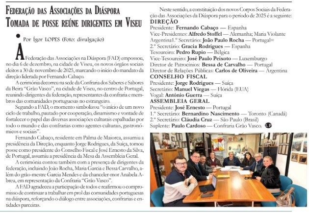 A Confraria Saberes e Sabores da Beira “Grão Vasco” acompanhou com grande interesse a reunião da Federação das Associações da Diáspora (FAD) com o Senhor Secretário de Estado das Comunidades Portuguesas, Dr. Emídio Sousa, realizada no Palácio das Necessidades.