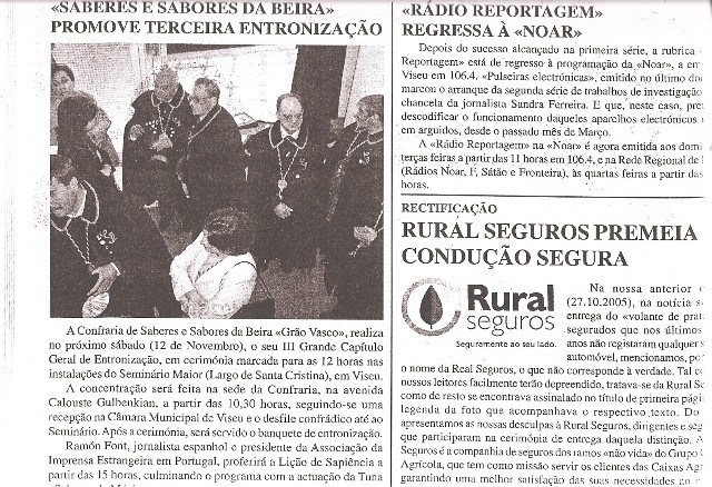 Lição de Sapiência proferida pelo Jornalista Rámon Font Presidente da Imprensa Estrangeira em Portugal e correspondente da TVE é também nosso comendador entronizado em 30/10/2004.